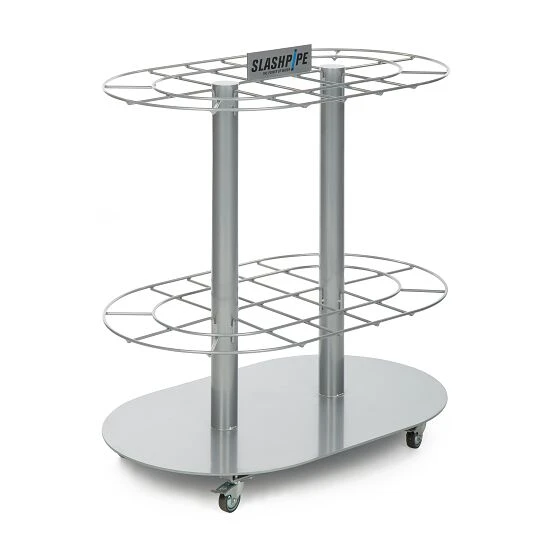 Der Kombiständer „Oval“ mit Transportrollen fasst bis zu 24 Slashpipes (20x Slashpipe Mini oder Fit plus 4x Pro oder Monster). Durch die montierten Rollen ist der Oval-Ständer jederzeit mühelos an jeden Einsatzort zu bewegen. Durch die platzsparenden Verstauungsmöglichkeiten sieht der Fitness-Raum immer aufgeräumt aus.