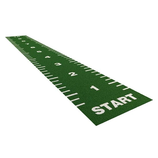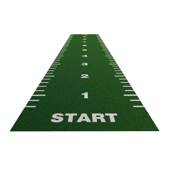 Die Sport-Thieme Sprintlaufbahn „Essential“ ist mit Start, Nummern und Linienmarkierungen gekennzeichnet. Das Schlitten-, Geschwindigkeits- und Schnelligkeitstraining ist somit optimal möglich. Dank der robusten und sehr dichten Polyethylen-Fasern kann selbst starke Reibung, welche beispielsweise beim Training mit Gewichten entsteht, der Laufbahn nichts anhaben. Die hohe Faserdichte bietet darüber hinaus einen guten Grip. Auch die UV-Beständigkeit überzeugt: Die Kunstrasen-Laufbahn lässt sich dadurch sowohl im Innen-, als auch im Außenbereich einsetzen. Die Rückseite der Bahn besteht aus LatexGebräuchliche Bezeichnung für Gummi. Latex ist der Milchsaft des Kautschukbaums und ein Bestandteil von Gummi. Er wird nach dem Trocknen als Kautschuk bezeichnet., welches für eine perfekte Rutschfestigkeit sorgt.