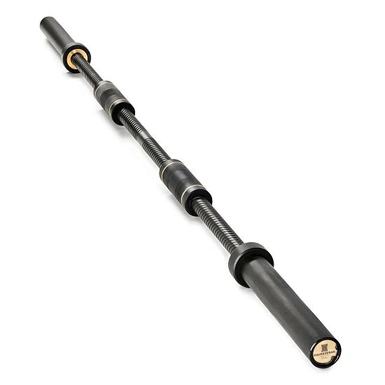 Die Squeezebar Langhantelstange „Pro Classic“ ist ein absolutes Muss für ein intensives, neuartiges Workout in Studios, Vereinen oder Personal Training – denn diese Langhantel ist keine herkömmliche Langhantel. Das absolute Alleinstellungsmerkmal sind die beiden kugelgelagerten Griffe, welche auf einem Spindelsystem laufen. Dieses System ist mit einem links- und einem rechtsläufigen Gewinde versehen, wodurch sich die Griffe bei Bewegung gegenseitig beeinflussen und synchron zueinander laufen. Das Gewinde hat eine auf die Biomechanik des Sportlers gewählte Steigung, die ein natürliches Bewegungsmuster des Trainierenden ermöglicht. Vorteil: Werden die Griffe nach außen oder innen geführt und es gibt eine Kompressionsbelastung von oben, entstehen keine ruckartigen Bewegungen der Griffstücke. Präzisionslager garantieren darüber hinaus eine stabile, kontrollierte Rotation, die für Höchstleistungen entscheidend sind. Zudem überzeugt die Langhantelstange mit einem zeitlosen, edlen Design in Schwarz. Jedes Griffstück verfügt über 2 goldene Ringe, die als Orientierung zum Greifen dienen. Besonders praktisch: Die Griffstücke sind gerändelt und ermöglichen dem Trainierenden besten Grip.