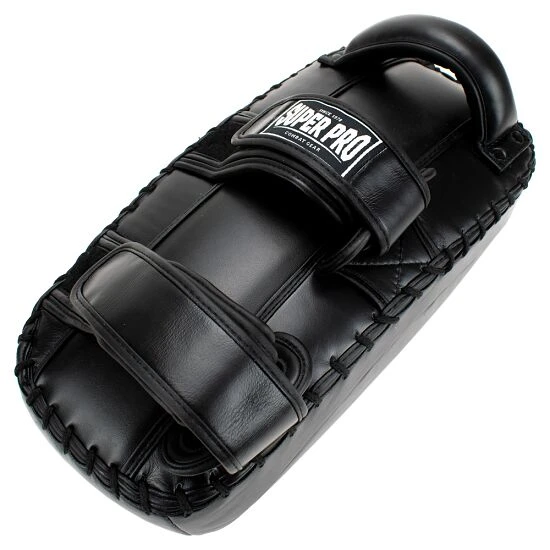 Das Super Pro Schlagpolster „Thaipad“ zeichnet sich durch die robuste Polsterung aus 5 verschiedenen Materialschichten aus, welche Schläge und Tritte effektiv absorbieren. Die gebogene Form des Polsters absorbiert zusätzliche Stöße gegen das Thaipad. Mehr Komfort beim Training bringen die Klettverschlüsse und eine Polsterung auf der Rückseite mit sich. Zudem sorgen die Klettverschlüsse für optimalen Halt und einen soliden Griff beim Training. Das 40×19 cm (LxB) große Handschlagpolster besteht aus Leder, wodurch es besonders robust und strapazierfähig ist. Durch das geringe Gewicht von 1 kg lassen sich auch längere Trainingseinheiten mit dem Polster durchführen.