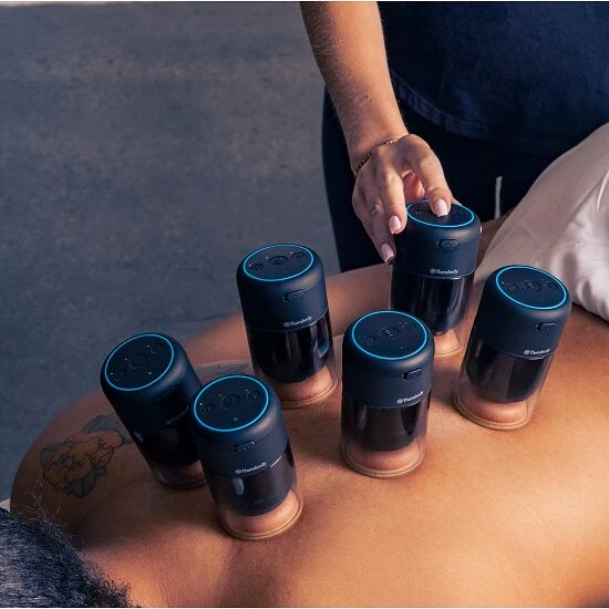 Der Therabody Schröpfsauger „Theracup“ kombiniert das Schröpfen mit Vibration und Wärme.